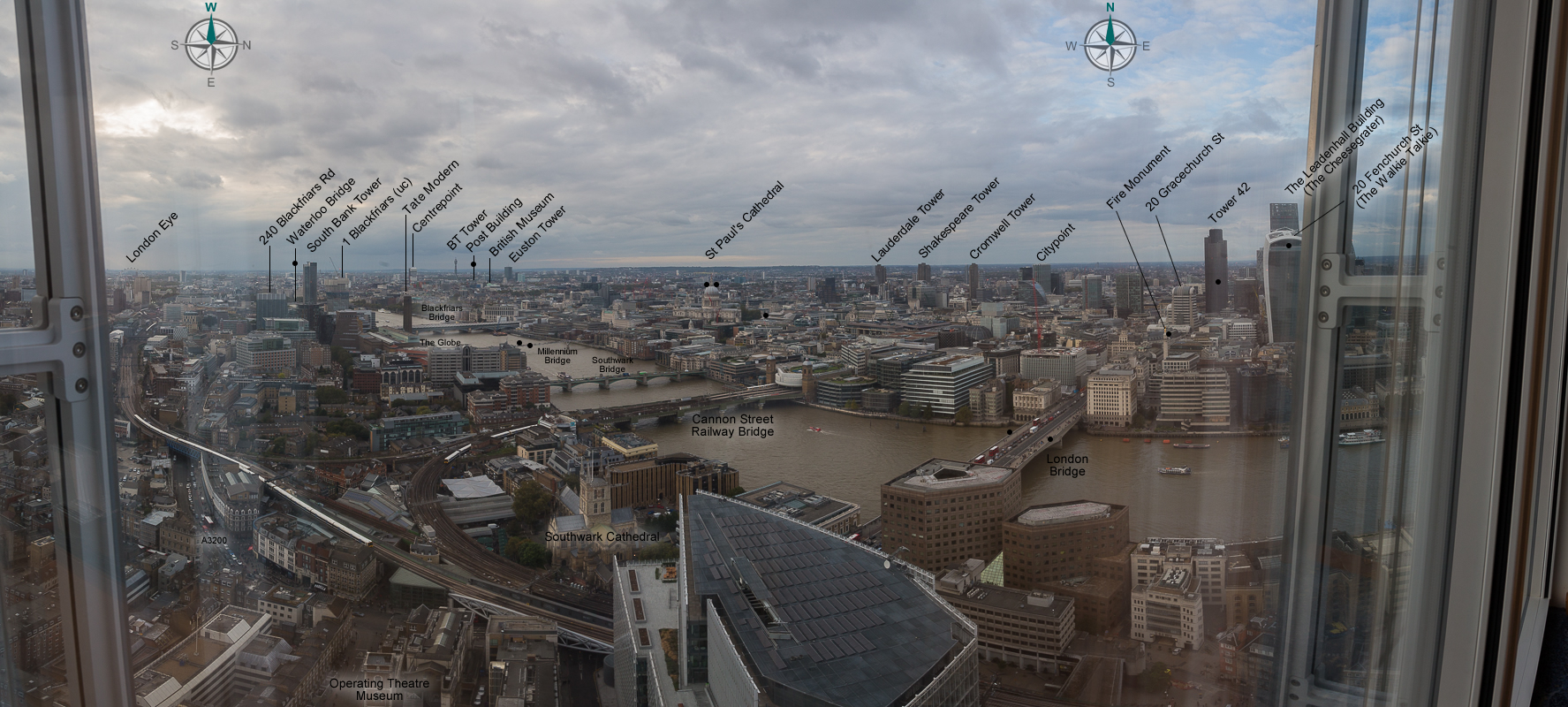 A view from our bedroom window, room 3711 on the 37th floor of the Shard. We had arrived a few hours earlier and had been down to Borough Market. Later we went to the Globe to see Imogen.