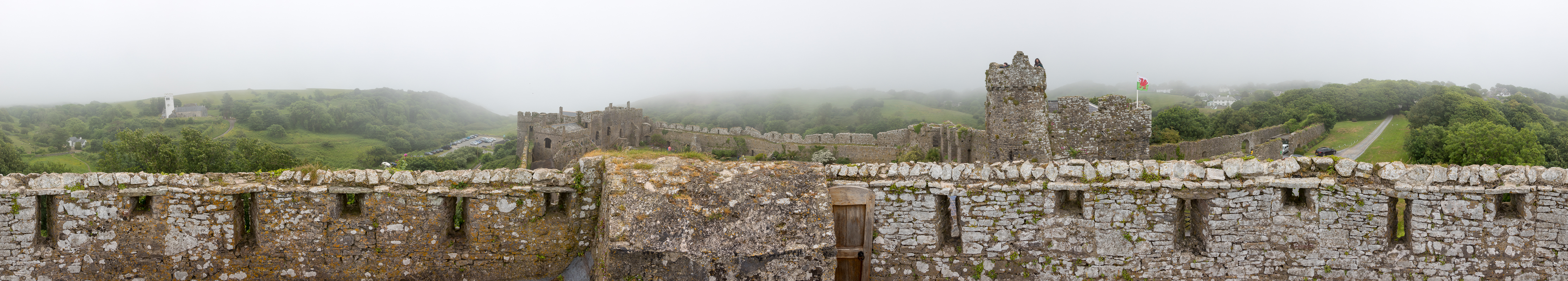 It was a misty start today and didn't look very promising so we spent an hour in the charming little castle at Manorbier before the walk. From the roof of the lower tower.