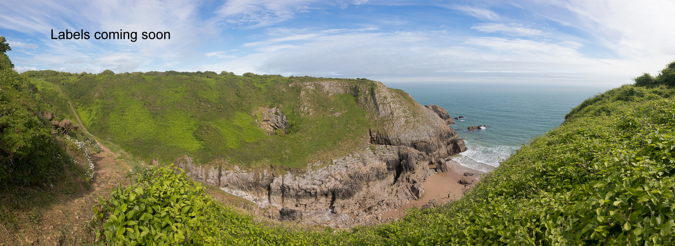 We revisited the beach near Lydstep for its abseiling options. Nick dropped down into a cave from the cliff opposite.