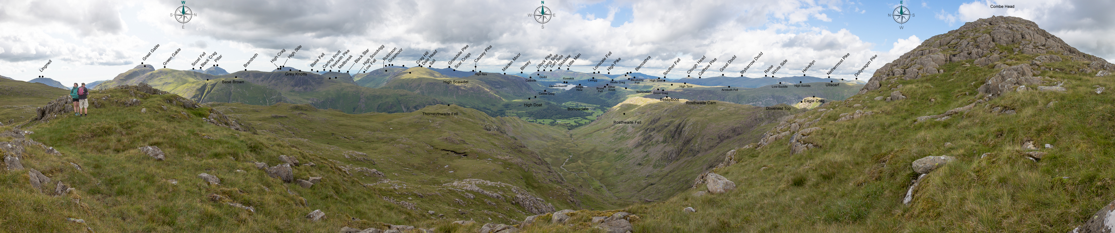 Just below the summit of Combe Head looking down into Combe Gill and along Borrowdale.