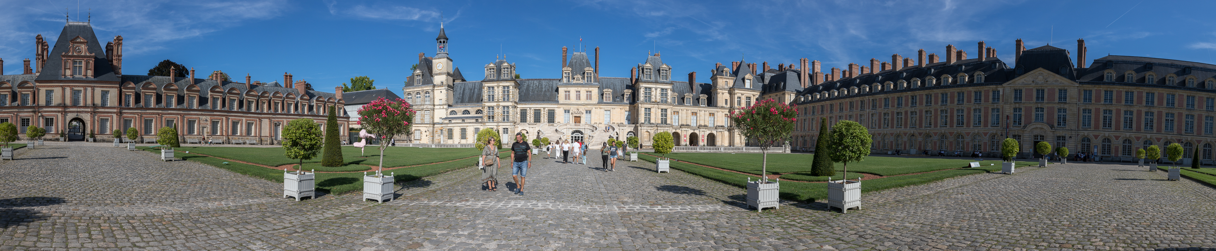A hot evening outside Fontainbleu Chateau.