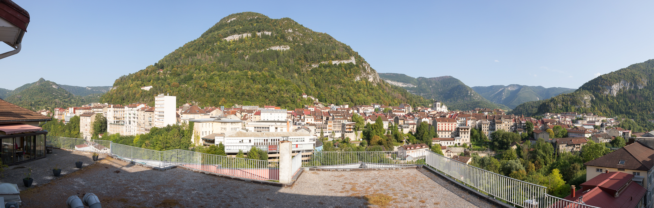 Looking across the valley to the centre of Saint-Claude from our hotel room window at the appropriately named Hotel Panoramique.
