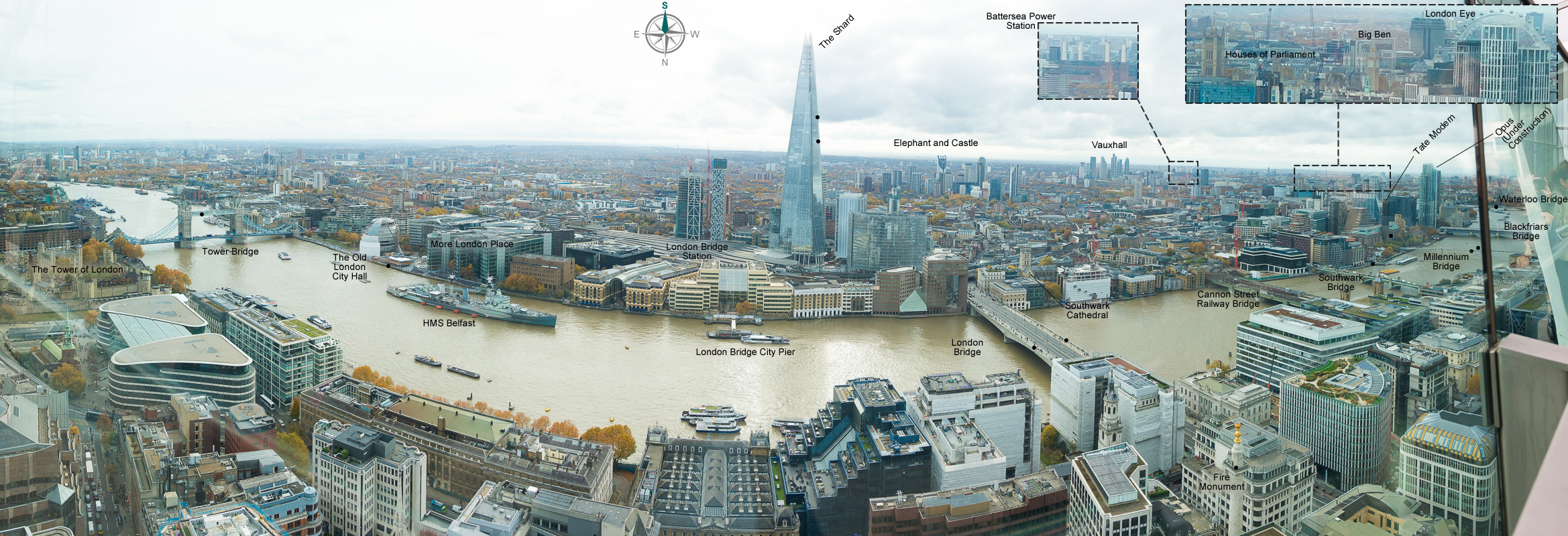 From the balcony on the south side of the Sky Garden. All the Sky Garden views are through glass.