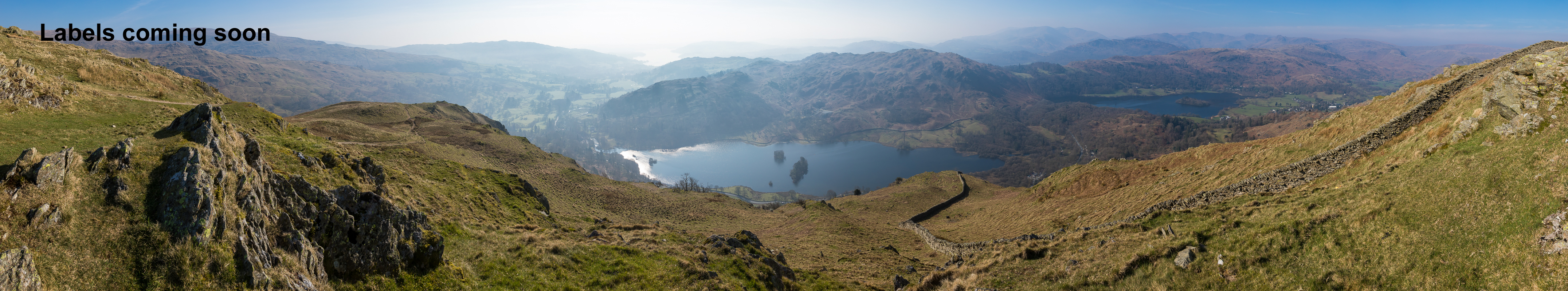 A little further up Nab Scar and Grasmere comes into view. The small patform that was the position of the previous panorama is just in view with two people standing on it.
