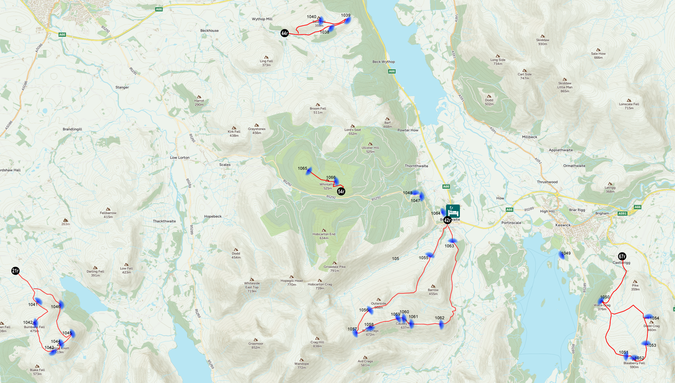 | Other Walks - 4 | Castlehead 18/3 and repeated 19/3, Braithwaite How 21/3, Pike How and Rough Crag 21/3 |