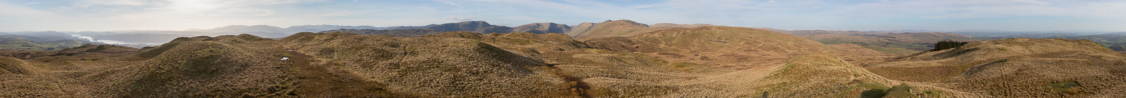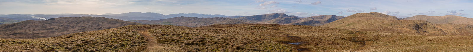 | 14.58 Panorama 1201 At the top of the Garburn Pass. Its was at this point that the camera started messing around - giving a lengthy processing pause after each picture. I fiddled with it on the fell for twenty minutes before giving up and having to put up with it for the rest of the walk. I eventually cleared some settings to solve it that evening. |