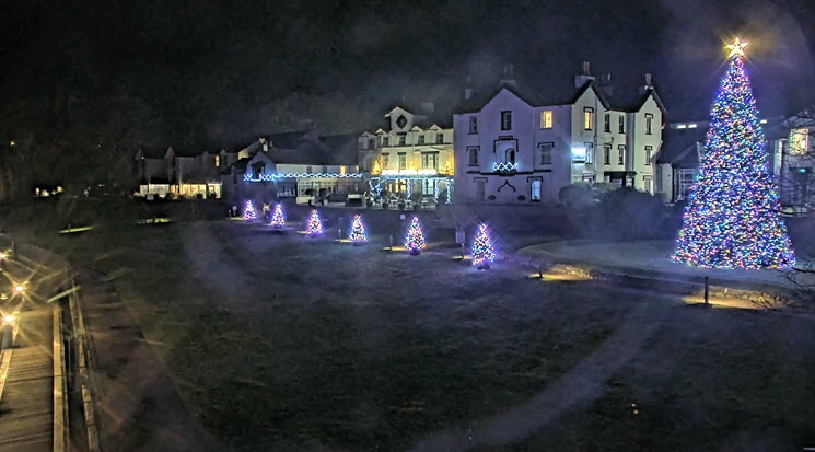 | The Christmas view across the road to the resort. | ||